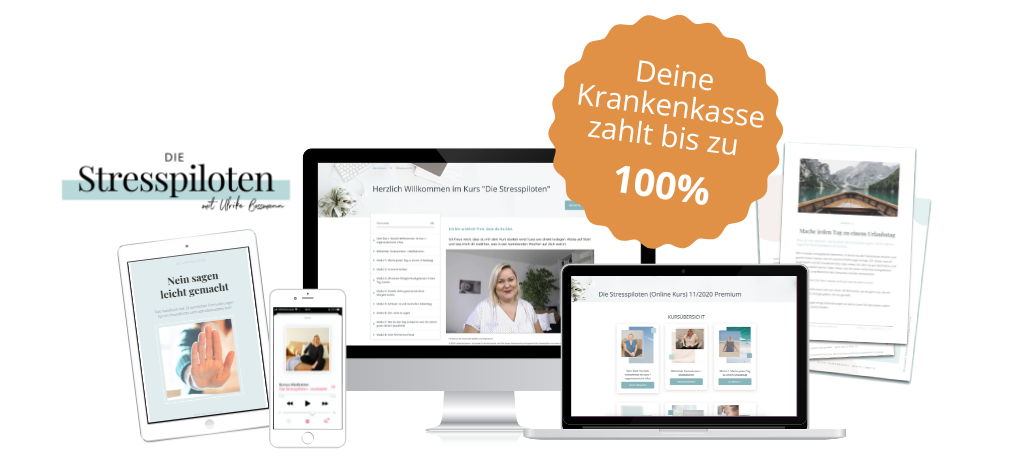 Dann komm in mein Online-Programm „Die Stresspiloten“. Gemeinsam bringen wir deine Gelassenheit zurück und sorgen dafür, dass du dein Leben wieder in vollen Zügen genießt. Das Beste? Der Kurs ist zertifiziert. Heißt für dich: Die Krankenkasse zahlt den Kurs in Teilen oder ganz für dich!